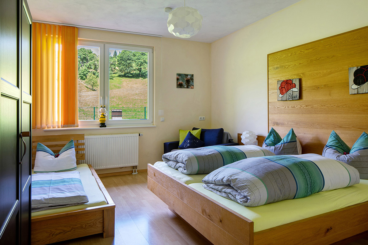 Unsere Wohnung ULRIKE liegt im Erdgeschoss und ist somit für Familien mit einigen Kindern oder besonders für Gäste mit Gehbehinderung geeignet. Beginnen Sie Ihren Urlaubstag mit einem leckeren Frühstück und hören den Kühen, Ihren Nachbarn, beim Vertilgen des frischen Grases auf den saftigen Weiden zu. Gerne können Sie auch diese frische Milch direkt beim Bauern nebenan kaufen. Im Winter blicken Sie direkt auf die Skipisten und können von Ihrer Haustüre aus direkt auf die Piste. Für die "Kleineren" steht im Haus ein Schlitten und eine Schaufel parat, welche "zum Schneemann bauen" einlädt. Für einen erholsamen Schlaf sind in den Schlafzimmern Moskitonetze vorhanden.